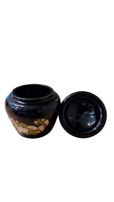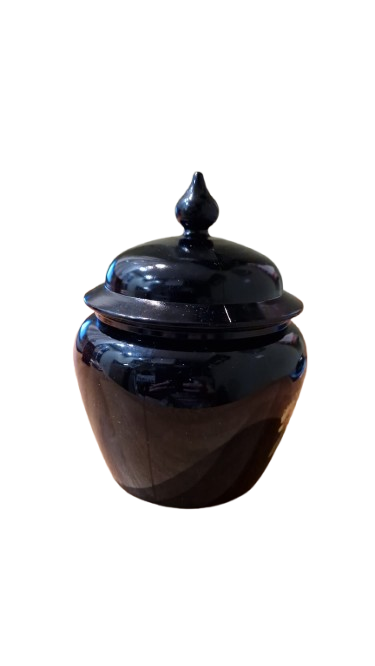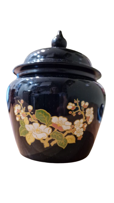 Vintage černá ametystová skleněná nádoba (zázvorová dóza) od značky "Avon".