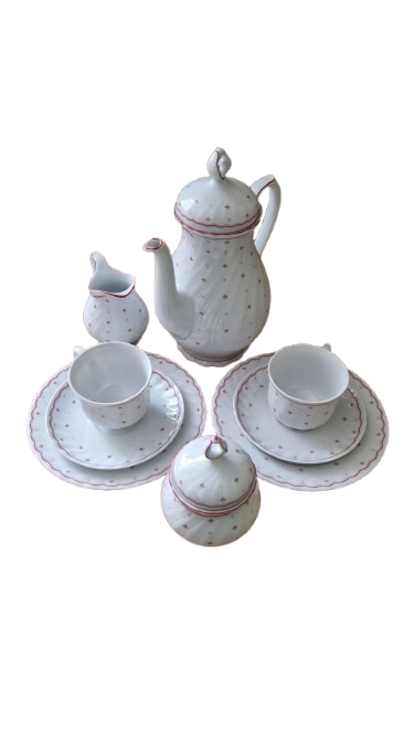 Porcelánový čajový servis od tradičního německého výrobce porcelánu Seltmann Weiden. konkrétně se jedná o dekor "Regina", který byl vyráběn v Bavorsku.