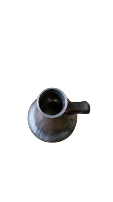 Váza má unikátní tvar s plasticky tvarovaným uchem a bohatým rytým květinovým dekorem.