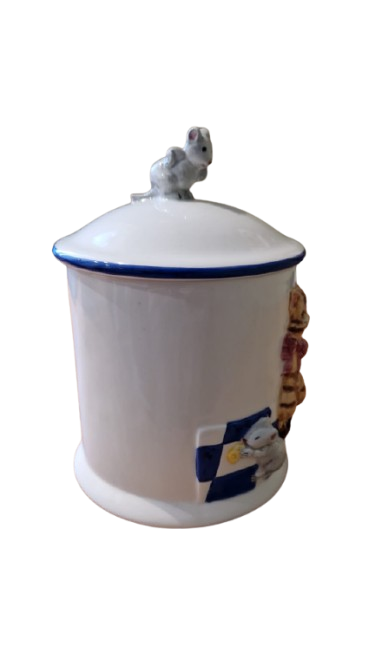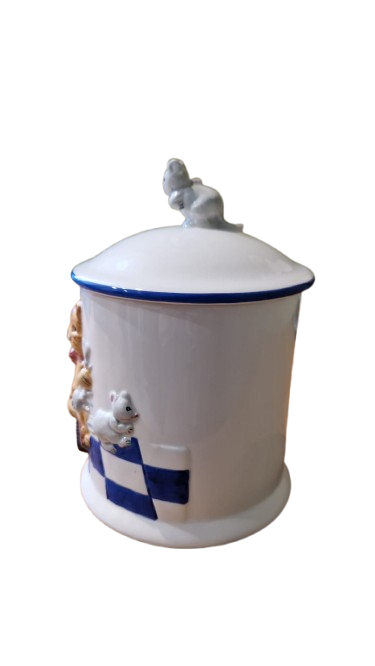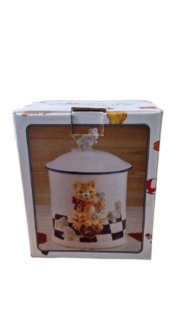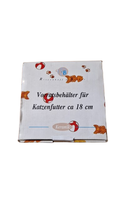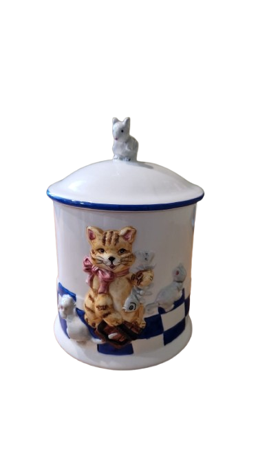 Keramický zásobník na kočičí krmivo od značky "Ritzenhoff & Breker" krásně zdobený motivem kočky a myši.