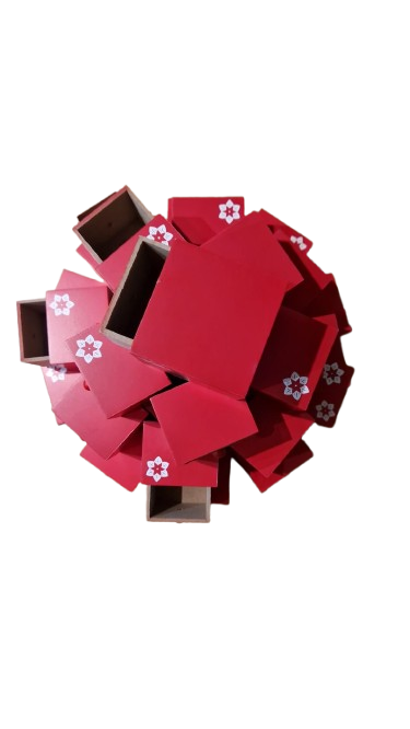 Do každé zásuvky lze umístit malý předmět nebo sladkost.