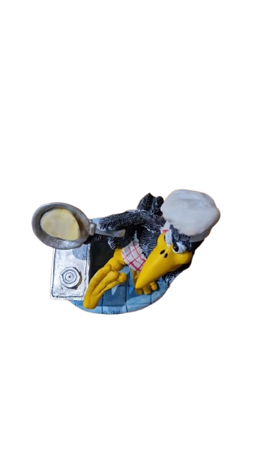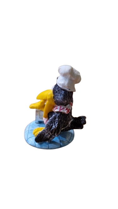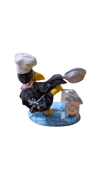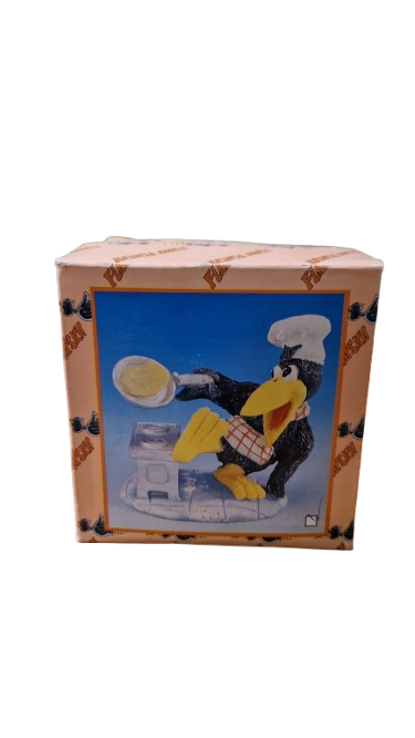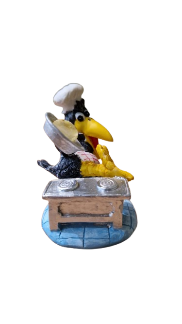 Keramická dekorační figurka "Šéf kuchař", která zobrazuje vránu v kuchařském oblečení.