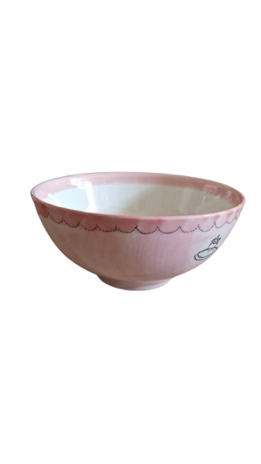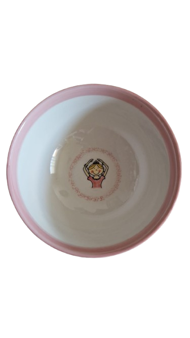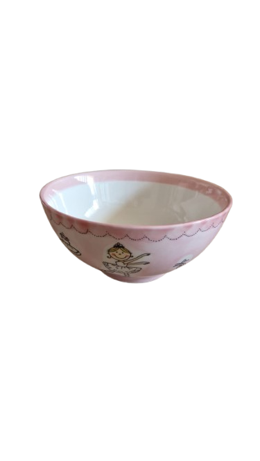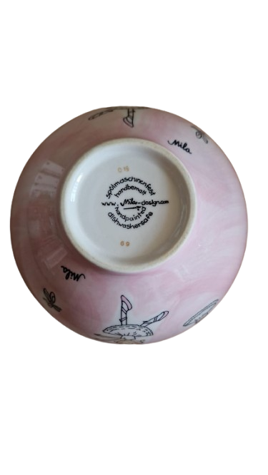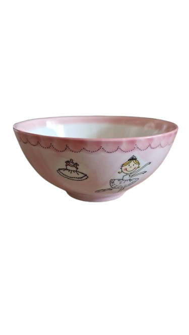 Keramická růžová miska s baletními motivy od značky "Mila". Ručně malované (handpainted) baletní motivy, včetně baletek a králíčka.