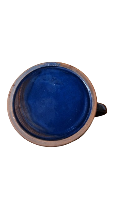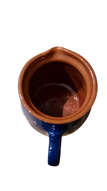 Vnitřek a horní okraj je ponechán v přirozené hliněné barvě a pokryt průhlednou glazurou.