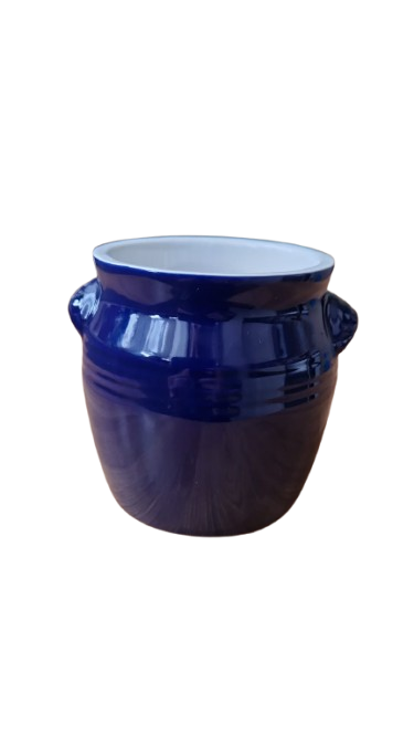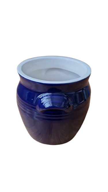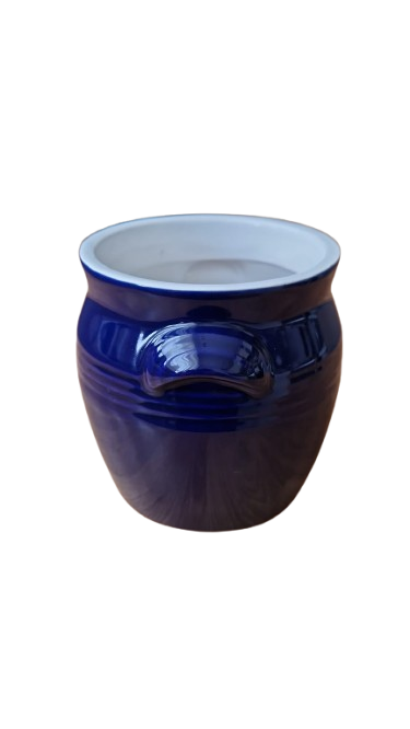 Výrazná keramická dóza v sytě kobaltově modré barvě s vysokým zrcadlovým leskem. Tento kousek kombinuje tradiční řemeslný vzhled s praktickým využitím a díky své barvě se stane nepřehlédnutelným doplňkem vaší kuchyně či interiéru.