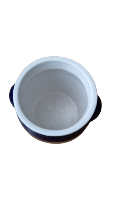 Má tradiční baňatý tvar s dekorativními bočními úchyty (oušky) pro snadnou manipulaci. Vnitřní část je vyvedena v čistě bílé glazuře, což usnadňuje údržbu a kontrolu čistoty.