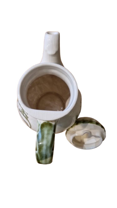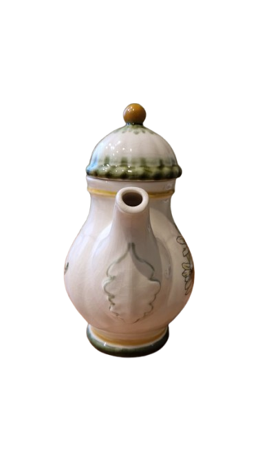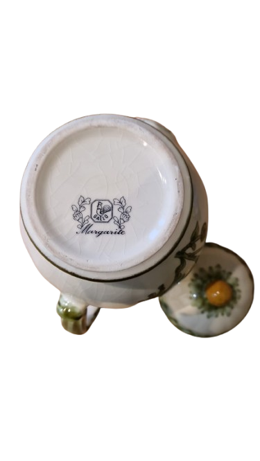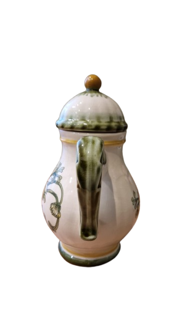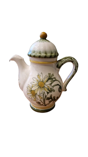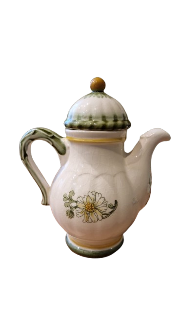 Keramická konvice na čaj značky Gallo (symbol kohouta), vzor Margarite od společnosti "Villeroy & Boch" z 80. let 20. století.
