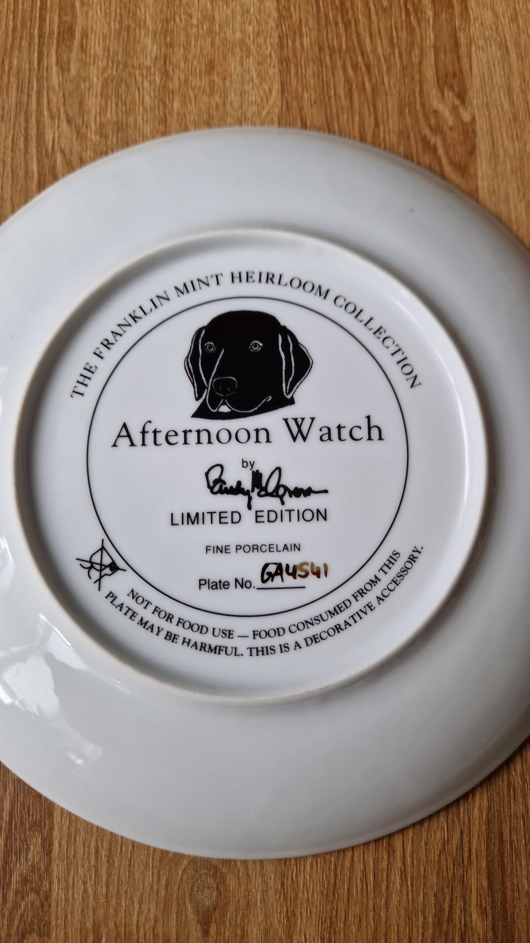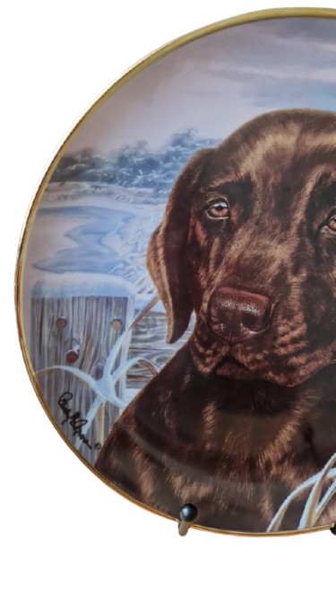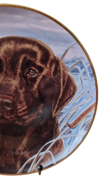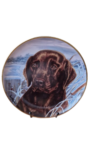 Exkluzivní porcelánový talíř z prestižní série Heirloom Recommendation od světoznámé porcelánky "Franklin Mint". Toto dílo s názvem "Afternoon Watch" (Odpolední hlídka) je mistrovským zachycením věrnosti a inteligence čokoládového labradorského retrívra.