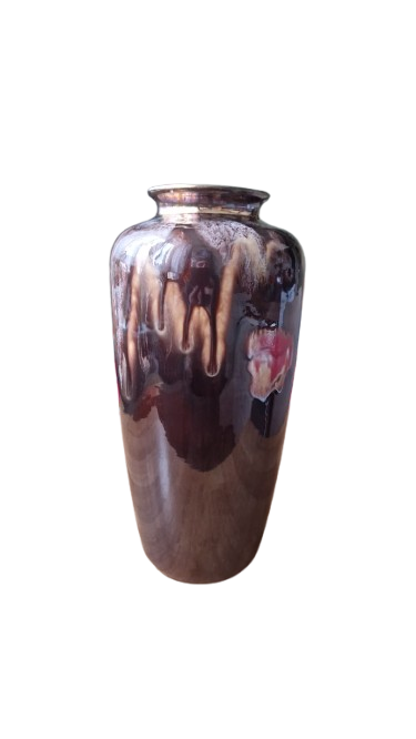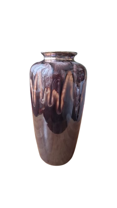 Designem je ikonická stékající glazura (drip glaze) v kombinaci čokoládově hnědé, krémové a bílé barvy. Hrdlo vázy je zdobeno zlatým lemem, což tento kus řadí do vyšší řady (často označované jako "Luxus" nebo "Atelier").