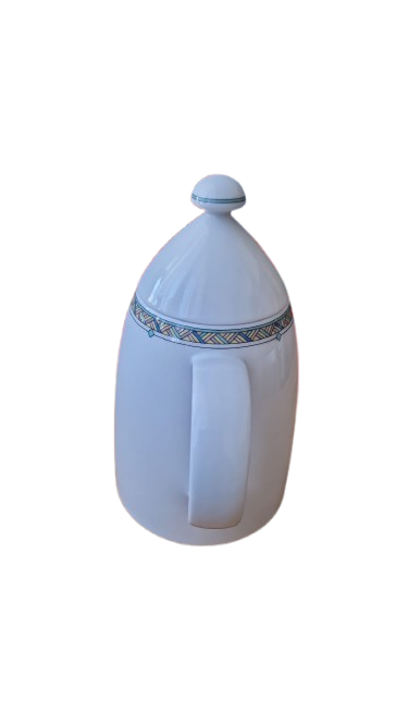 Elegantní vysokou konvici (na kávu/čaj) s pokličkou od renomované německé značky "Arzberg". Tato značka je celosvětově uznávaná pro svůj nadčasový design a prvotřídní kvalitu porcelánu (filozofie "Forma následuje funkci").