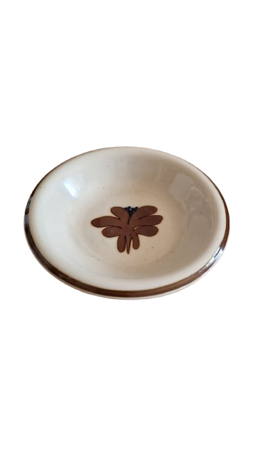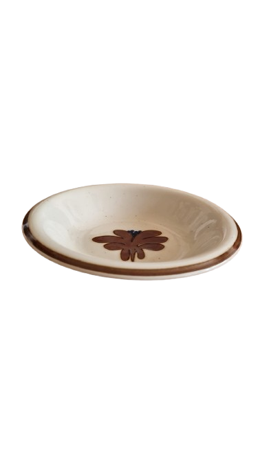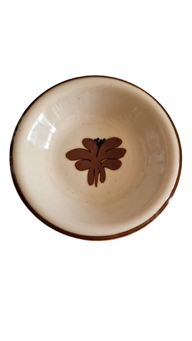 Design Alpina je charakteristický svým hnědým okrajem a stylizovaným květinovým motivem uprostřed., ručně malované.
