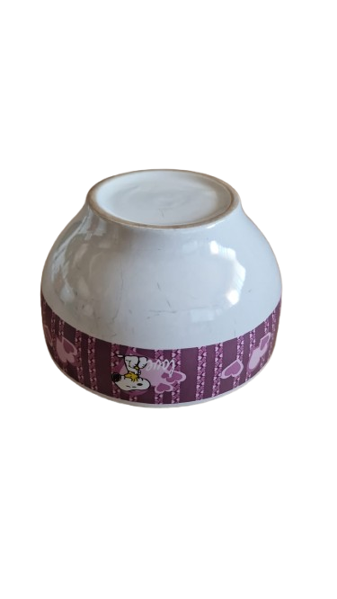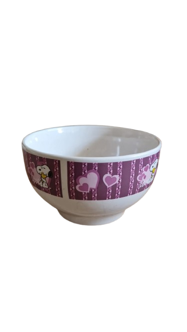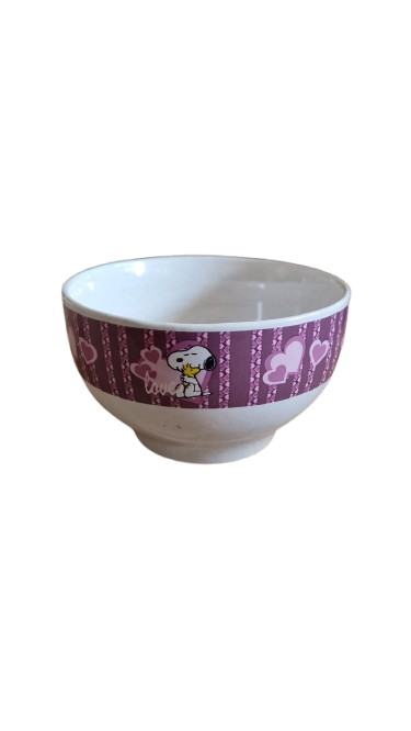 Sběratelská miska Snoopy KFC Kentucky Stacking Bowl, která byla součástí propagační akce KFC. Zdobená motivem Snoopyho a srdíček, s fialovým pruhem.