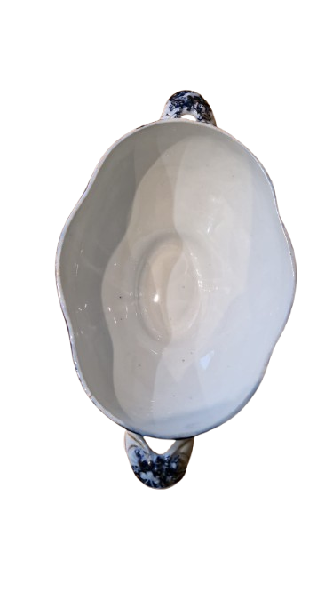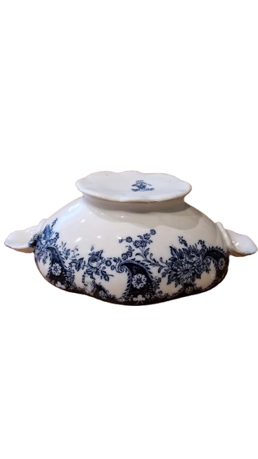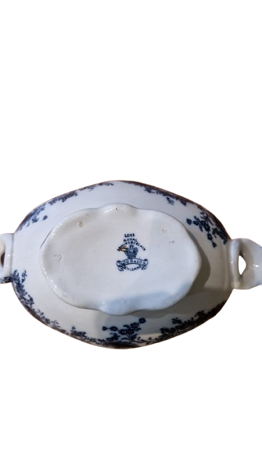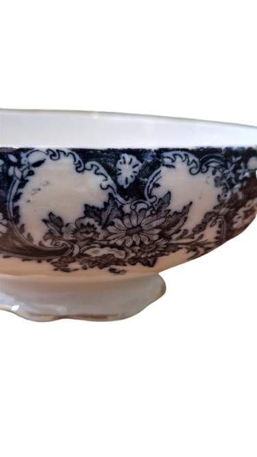 Porcelánová servírovací mísa značky "Wood & Sons England" ze série "LOIS" s modrobílým Transferware dekorem a jemným zlacením na okrajích.