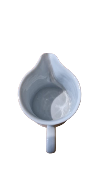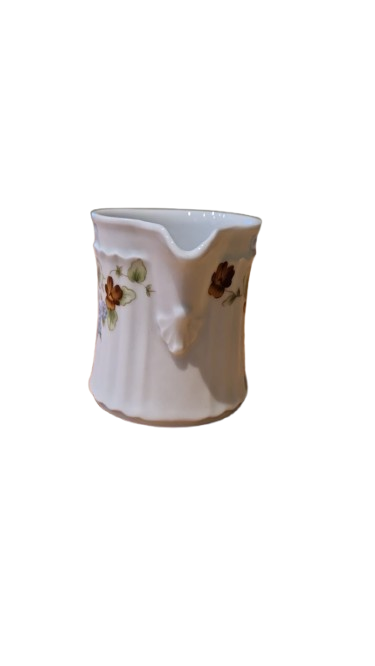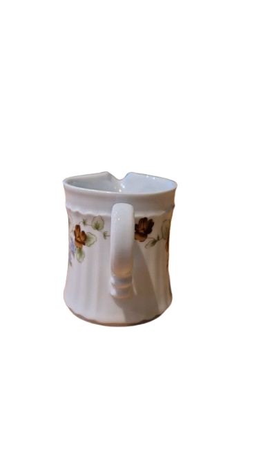 Porcelánová mléčenka značky "Eschenbach" v designu Salzburg. Má bílou barvu s květinovým vzorem a vroubkovaným okrajem.