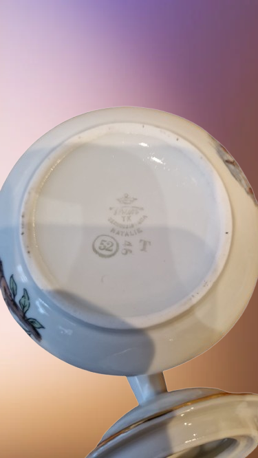 Porcelán se značkou TK (zkratka pro Thun-Klösterle) pochází z nejstarší české porcelánky v Klášterci nad Ohří, založené roku 1794. Značení "Czechoslovakia" odkazuje na období po roce 1918, kdy se k tradiční zkratce začal přidávat název nově vzniklého státu.