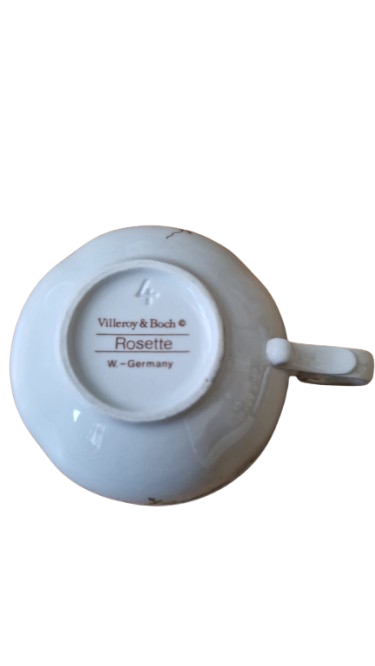 Elegantní porcelánový šálek od prestižní německé značky "Villeroy&Boch z oblíbené kolekce "Rosette". Tento vzor je známý svým jemným romantickým stylem a vysokou kvalitou zpracování.