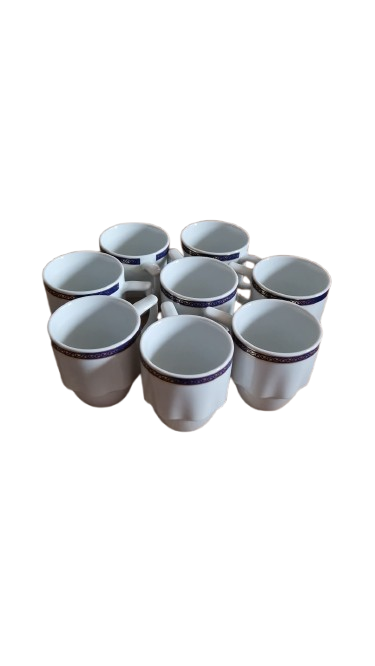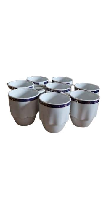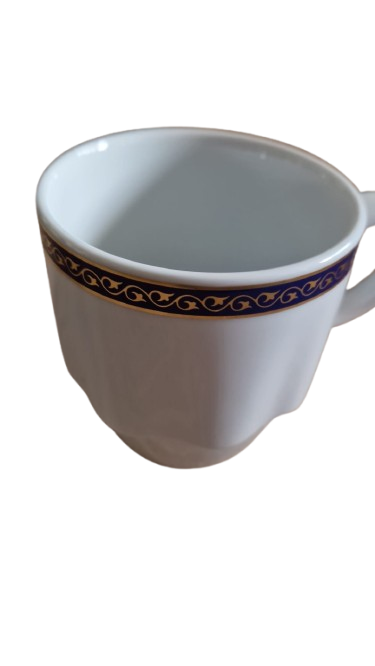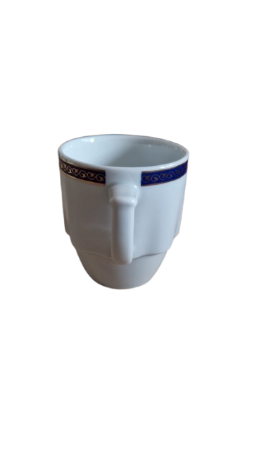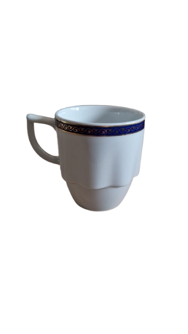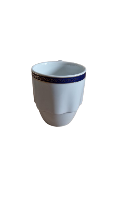 Šálek je vyroben z bílého porcelánu a má modrý a zlatý dekor. Kolekci Laola navrhl italský designér Mario Belliny.