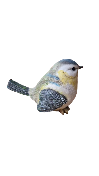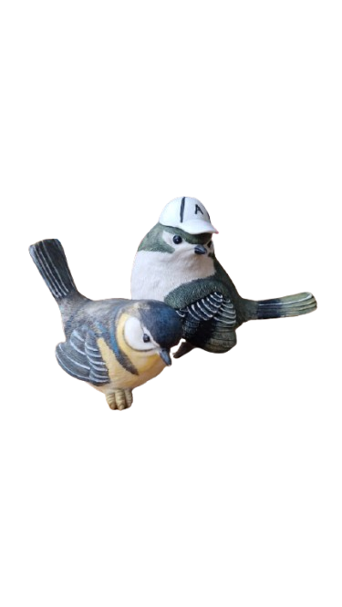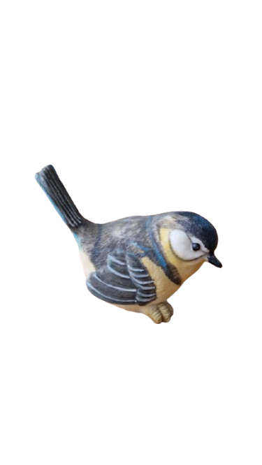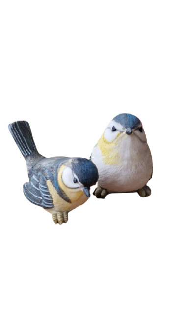 Sýkorky jsou vyrobeny z odolného polyresinu - umělá pryskyřice (vypadá jako kámen/keramika, ale jen tak se nerozbije), který umožňuje detailní zpracování peří i výrazů.