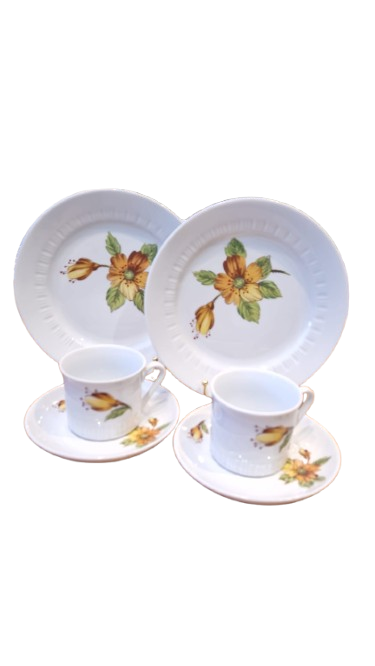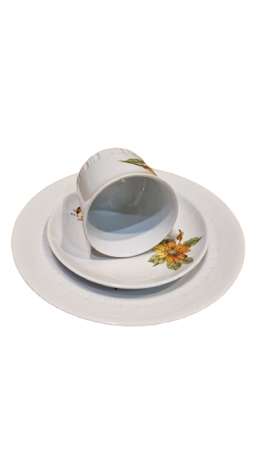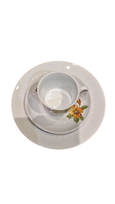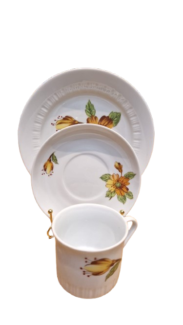 Hledáte kousek historie s nádechem nostalgie a elegance? Nabízíme tyto nádherné kávové soupravy od legendární německé značky "Kahla", vyrobené v éře NDR (60.-80. léta). Porcelán zdobí jemný květinový motiv v hřejivých žluto-oranžových tónech a elegantní svislý reliéf, který dodává každému doušku kávy punc výjimečnosti.