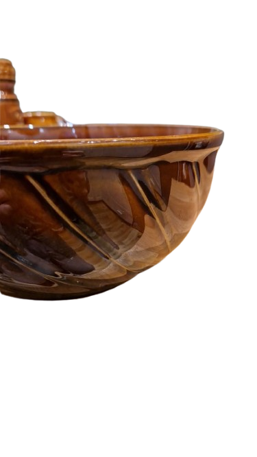Mísa je vyrobena z hutné kvalitně glazované kameniny v typickém tmavě hnědém odstínu s elegantním reliéfním vzorem (spirálové drážkování).