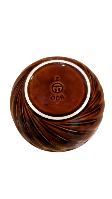 Sběratelská keramická mísa z proslulé durynské porcelánky "Triptis". Tento kus s typickým spirálovým reliéfem je dokonalým příkladem užitného designu 60. a 70.let z bývalého východního Německa.
