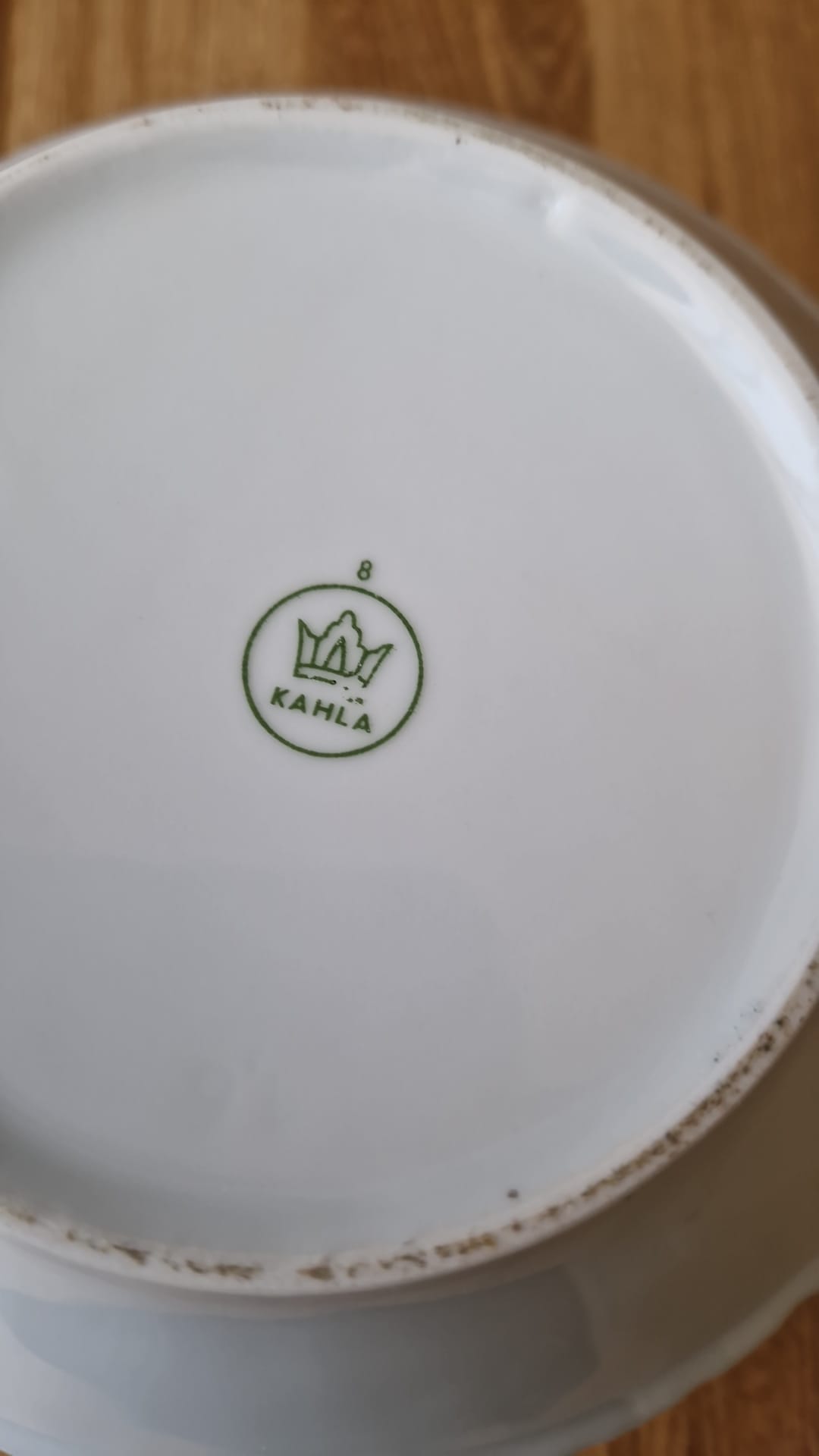 Krásná porcelánová mísa (terina) s poklicí od renomované německé značky "Kahla". Jedná se o originální kousek z éry NDR (60.-70. léta), značený klasickou zelenou korunkou. Jako bonus v rámci akce 1+1 přidáváme ke koupi mísy ladící mělký talíř ze stejné série zcela zdarma.