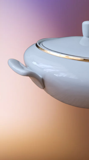 Víko disponuje výřezem pro naběračku, což umožňuje elegantní servírování přímo u stolu bez ztráty teploty pokrmu.