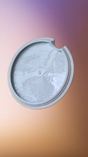Minimalistický kulatý tvar s ikonickými plochými uchy a jemným ručním zlacením (pravé zlato) na okrajích.