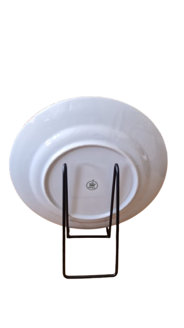 Krásná porcelánová mísa s poklicí od renomované německé značky "Kahla". Jedná se o originální kousek z éry NDR (60.-70. léta), značený klasickou zelenou korunkou. Jako bonus v rámci akce 1+1 přidáváme ke koupi mísy ladící mělký talíř ze stejné série zcela zdarma.