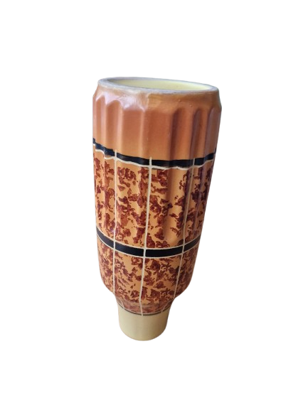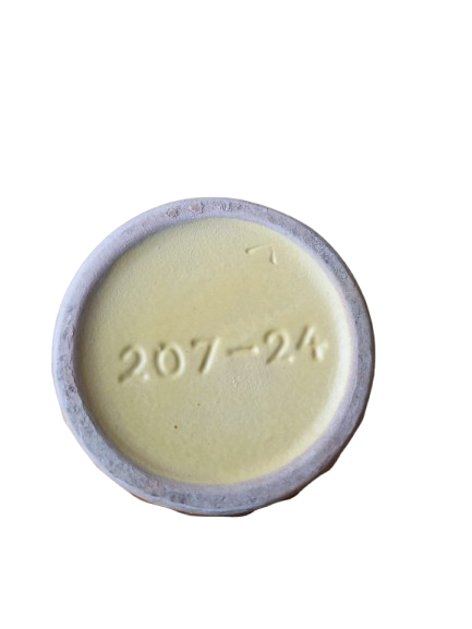Vyznačuje se typickým geometrickým reliéfem s mřížkovým vzorem a atraktivní mramorovanou glazurou v odstínech hnědé, oranžové a žluté. Vnitřek vázy je vyveden v tmavé glazuře. Na dně je čitelné vytlačené označení formy a výšky: 207-24.