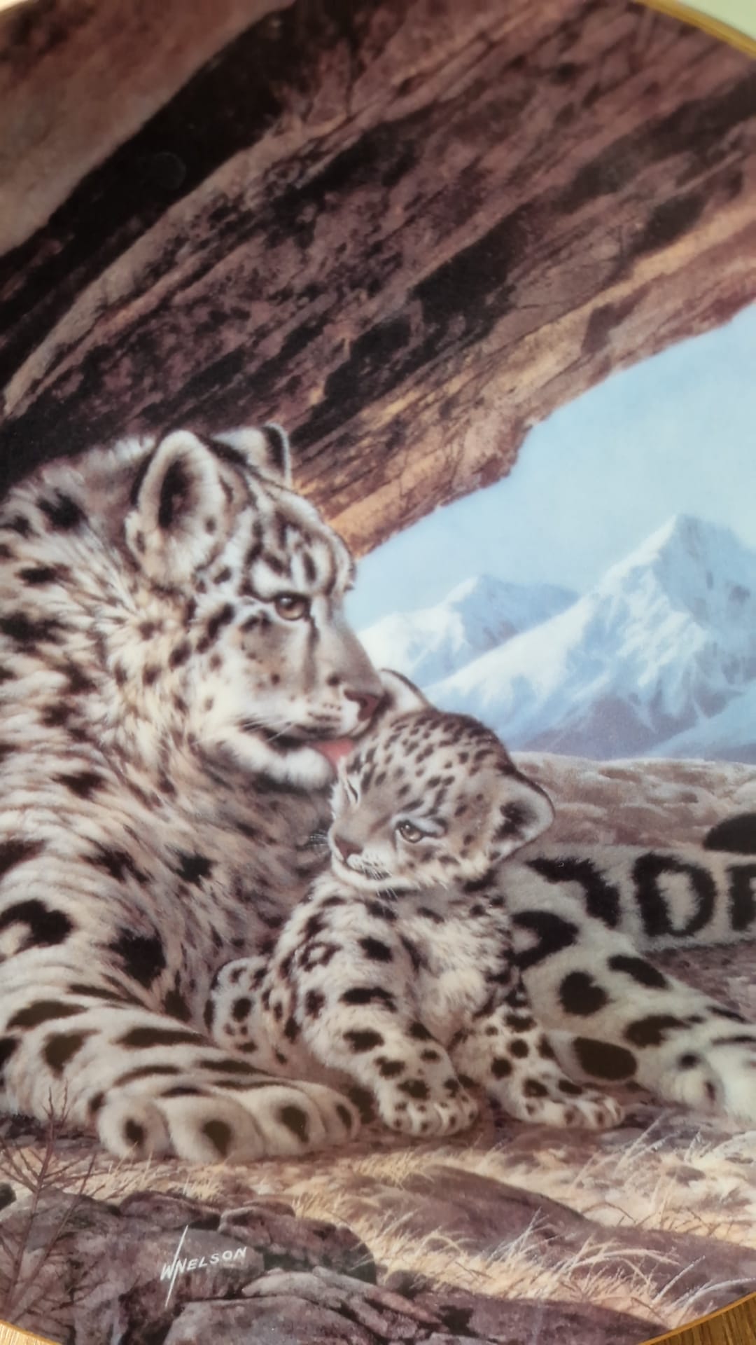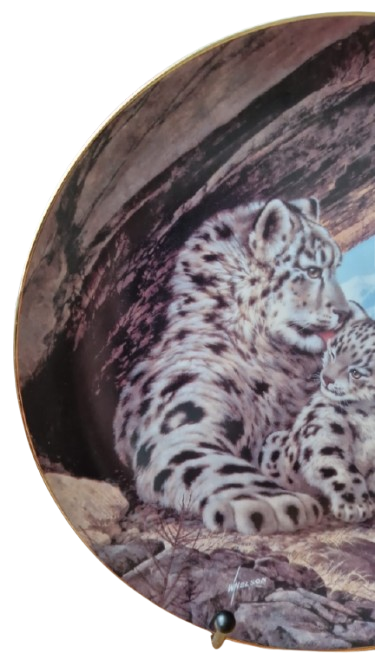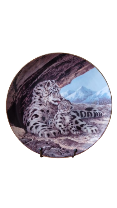 Krásný sběratelský talíř z limitované edice, který zachycuje něžný moment mezi samici irbise a jejím mládětem v majestátním pohoří Himaláje. Autorem díla je renomovaný přírodovědný malíř "Will Nelson".