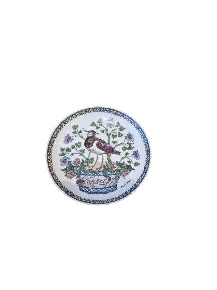 Třetí talíř ze série "Ptačí kalendář". Nádherný jarní motiv s typickým polním ptákem a prvními jarními květy.