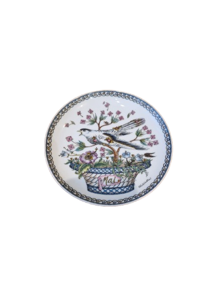 Pátý talíř ze série "Ptačí kalendář". Poetický talíř symbolizující vrchol jara a lásky, s motivem mistra zpěvu - slavíka.