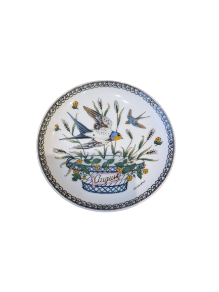Sedmý talíř ze série "Ptačí kalendář". Srpnový motiv zachycující vlaštovku v čase hojnosti a vrcholného léta.