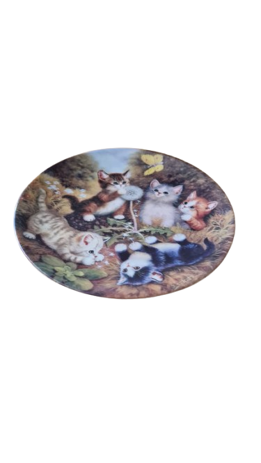 Sběratelský porcelánový talíř z kolekce "Katzenkinder auf Entdeckungsreise" (Koťata na objevitelské cestě).
