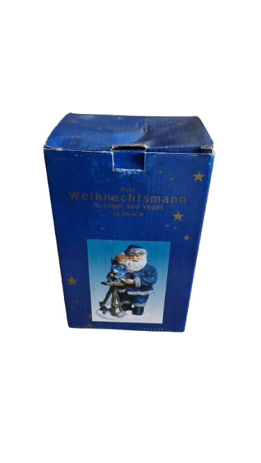 Sběratelská figurka Santa Clause (Weihnachtsmann) držícího anděla a ptáčka.