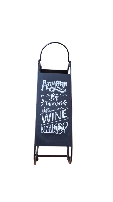 Originální a praktický stojan na 6 láhví vína ve tvaru písmene "A". Stojan kombinuje industriální černý kov s vtipným nápisem, který oživí každou kuchyni nebo obývací pokoj.