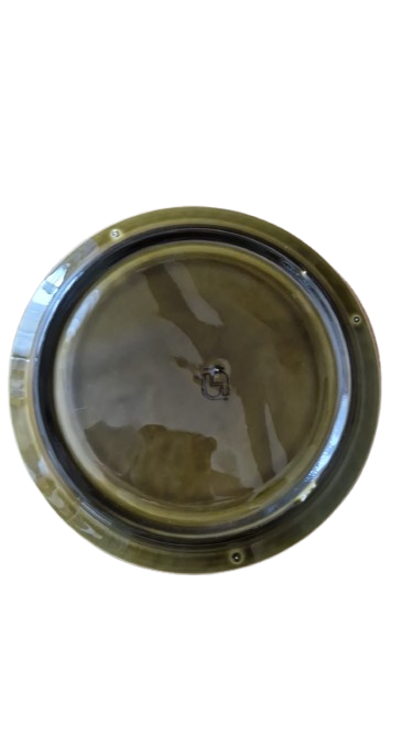 Keramický talíř na fondue od společnosti "Sarreguemines France" s reliéfním motivem a stylem, vyrobeném ve Francii v 70. letech.