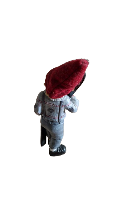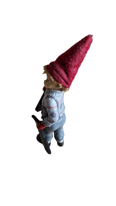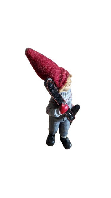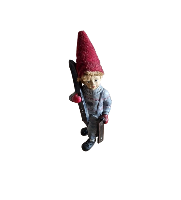 Sběratelská Skandinávská vánoční figurka chlapce s lyžemi, plstěnou čepicí.