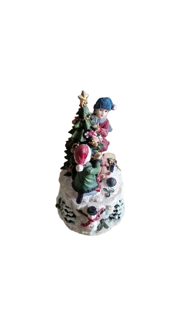 Keramická vánoční hrací skříňka ve tvaru sněhové koule nebo podstavce s vánočním motivem. Zobrazuje dvě děti zdobící vánoční stromeček, s medvídkem, dárkem a bubnem u jejich nohou. Hrací skříňka má otočný mechanismus a přehrává vánoční melodie, konkrétně Tichou noc.