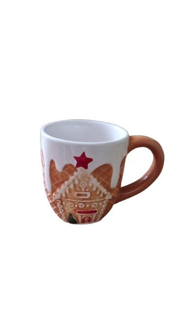 Dva keramické hrníčky s motivem perníkové chaloupky a oplatky.