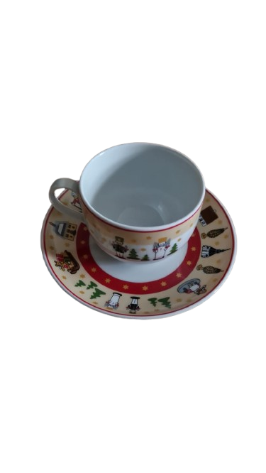 Na šálku i podšálku vyobrazeny tradiční německé vánoční motivy - louskáčci, horníci, andělíčci a postavy na lyžích. Styl postaviček silně připomíná tradiční dřevěné hračky z oblasti Krušných hor (Erzebirge), které jsou s německými Vánocemi neodmyslitelně spjaty.