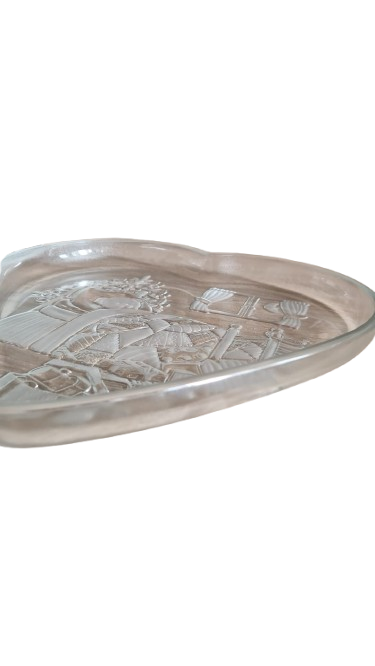 Walther Glas, známý německý výrobce skla, nabízel různé misky a podnosy ve tvaru srdce, často z lisovaného, matného nebo čirého skla.