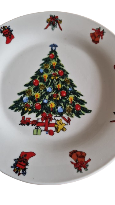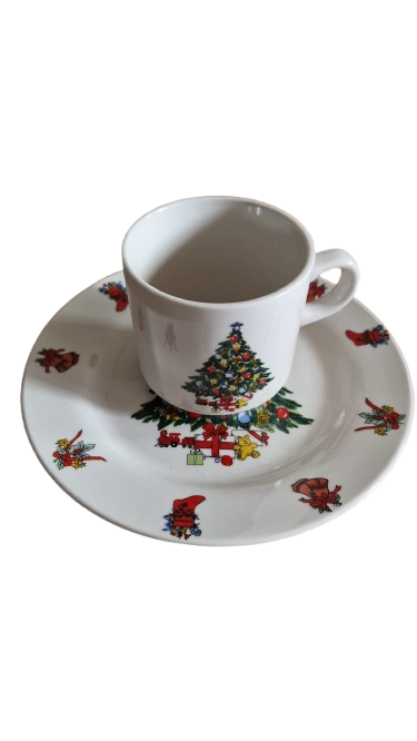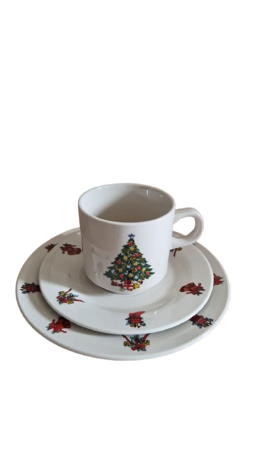 Vánoční sada porcelánu "Wellco Feinsteinzeug" pro 5 osob s motivem stromečku a dárků (15 dílů) z německého Krefeldu.