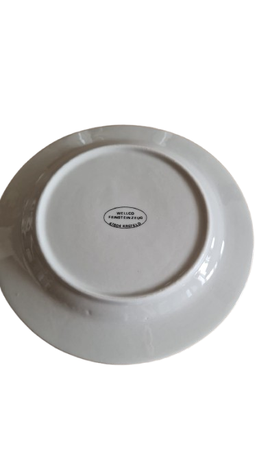 Nápis "Feinsteinzeug" je německý výraz pro jemnou kameninu/porcelán. Tento materiál je vypalován při velmi vysokých teplotách, díky čemuž je nenasákavý, velmi pevný a odolný proti mechanickému poškození.