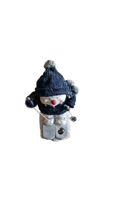 Sběratelská vánoční figurka sněhuláka na lyžích.