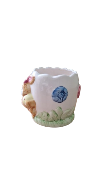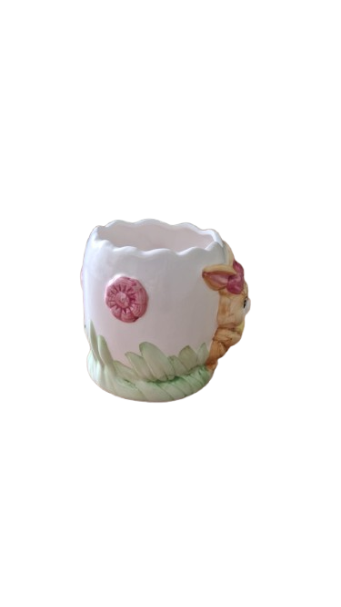 Keramický velikonoční květináč se zajíčkem, který je tradičním symbolem Velikonoc a jara, představujícím plodnost a znovuzrození.