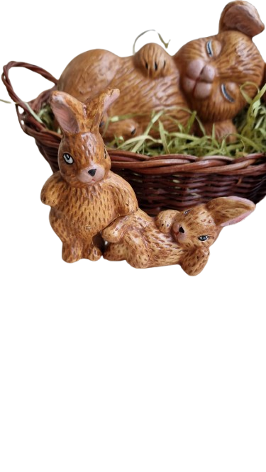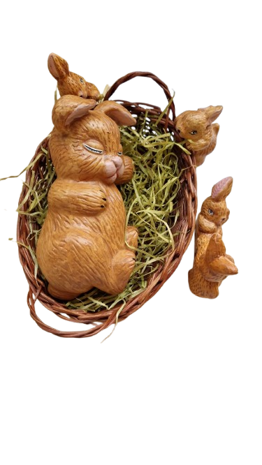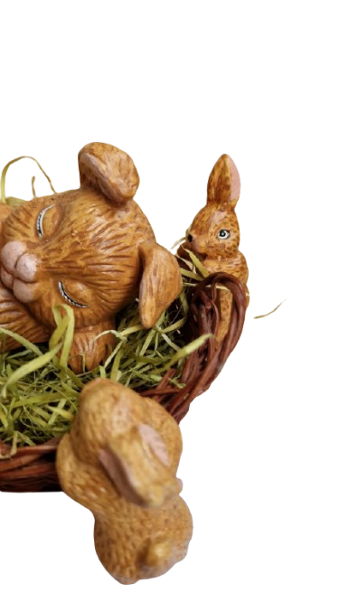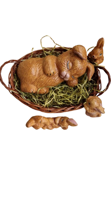 Sada 5. velikonočních zajíčků s košíčkem.