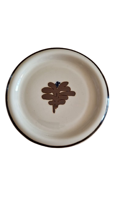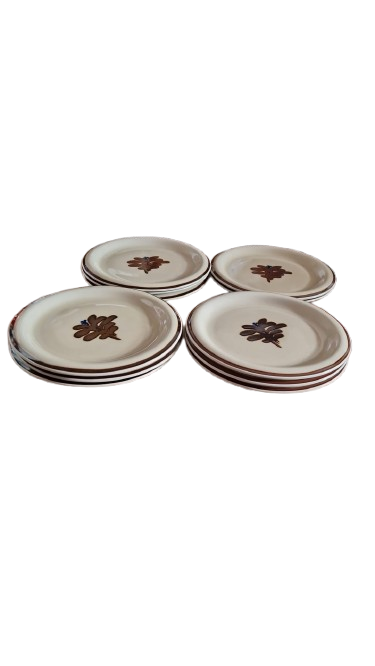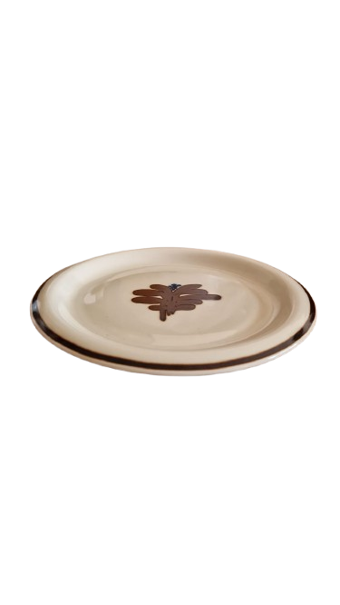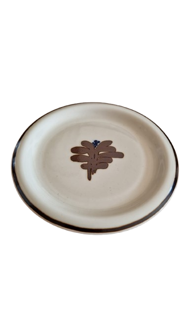 Design Alpina je charakteristický svým hnědým okrajem a stylizovaným květinovým motivem uprostřed, ručně malované.