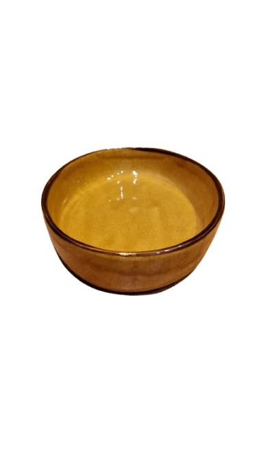 Má sytou medově hořčicovou glazurou s tmavě hnědým lemem.